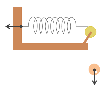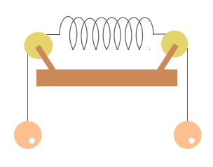 壁や天井がばねを支えないと、ばねにおもりをつり下げたらばねが落ちてしまい、ばねは伸びません。