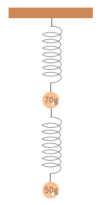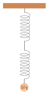 ばね2つとおもり1つを縦につなげるとき(直列つなぎ)